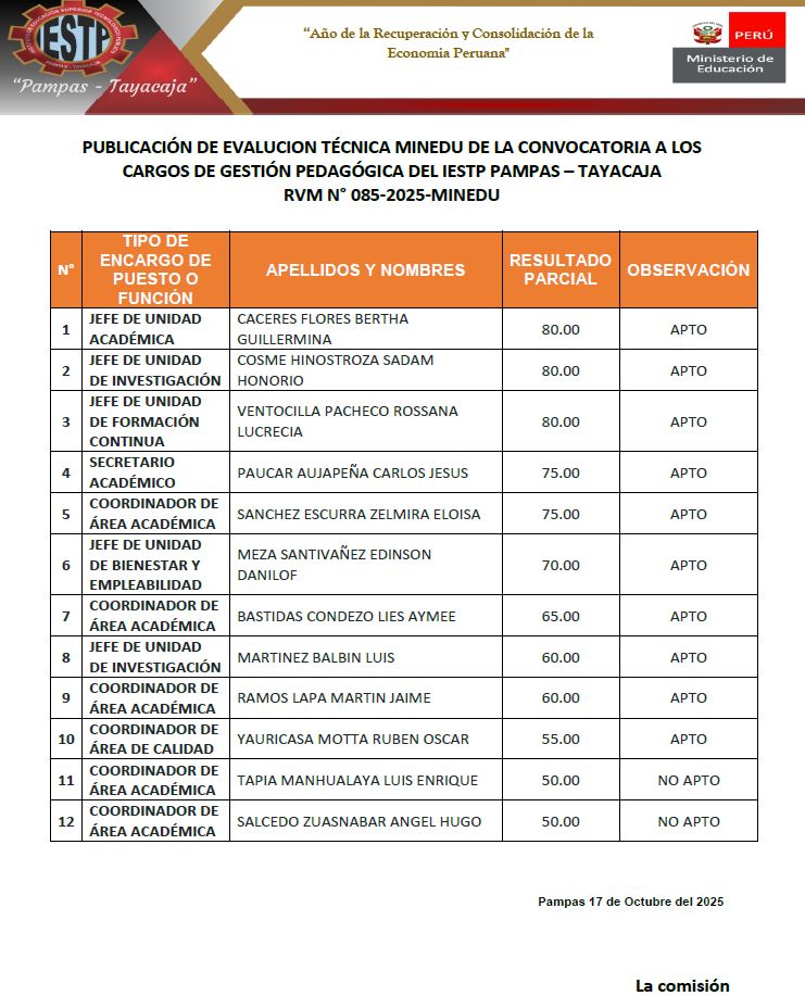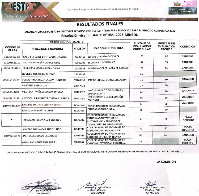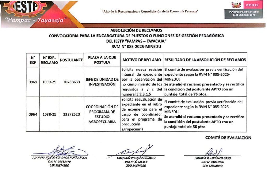 - CONVOCATORIA PARA EL CONCURSO DE CONTRATACIÓN PERSONAL ADMINISTRATIVO IESTP «PAMPAS TAYACAJA» 2025.