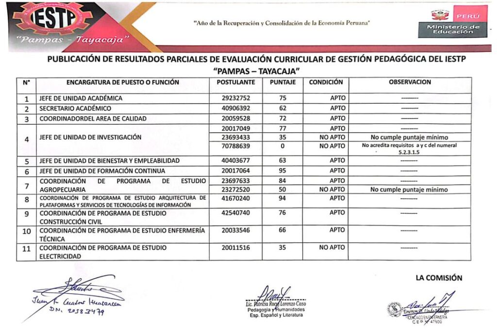 - CUADRO DE PLAZAS VACANTES PARA EL PROCESO DE CONTRATACIÓN DOCENTE IESTP «PAMPAS TAYACAJA» 2024.