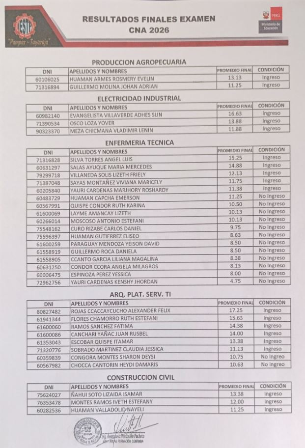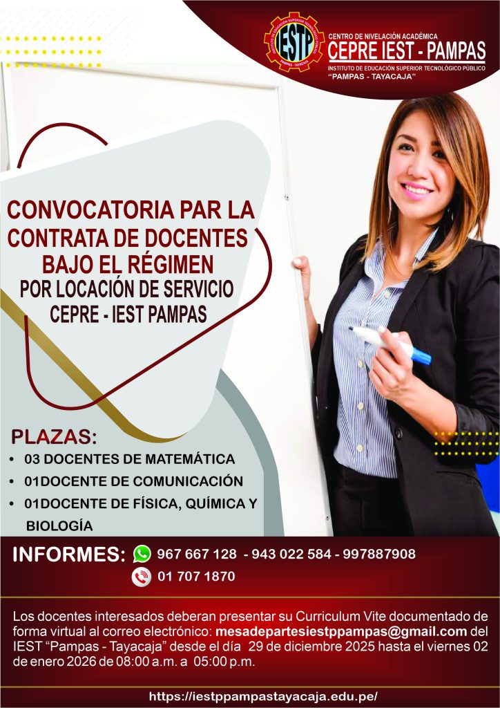 - CONVOCATORIA PARA EL CONCURSO DE CONTRATACIÓN DOCENTE IESTP «PAMPAS TAYACAJA» 2024.